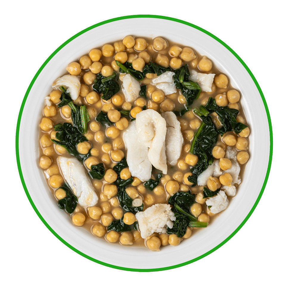 Un reconfortante potaje tradicional que combina garbanzos tiernos con bacalao al punto de sal, cocinado lentamente para captar todos los sabores auténticos.